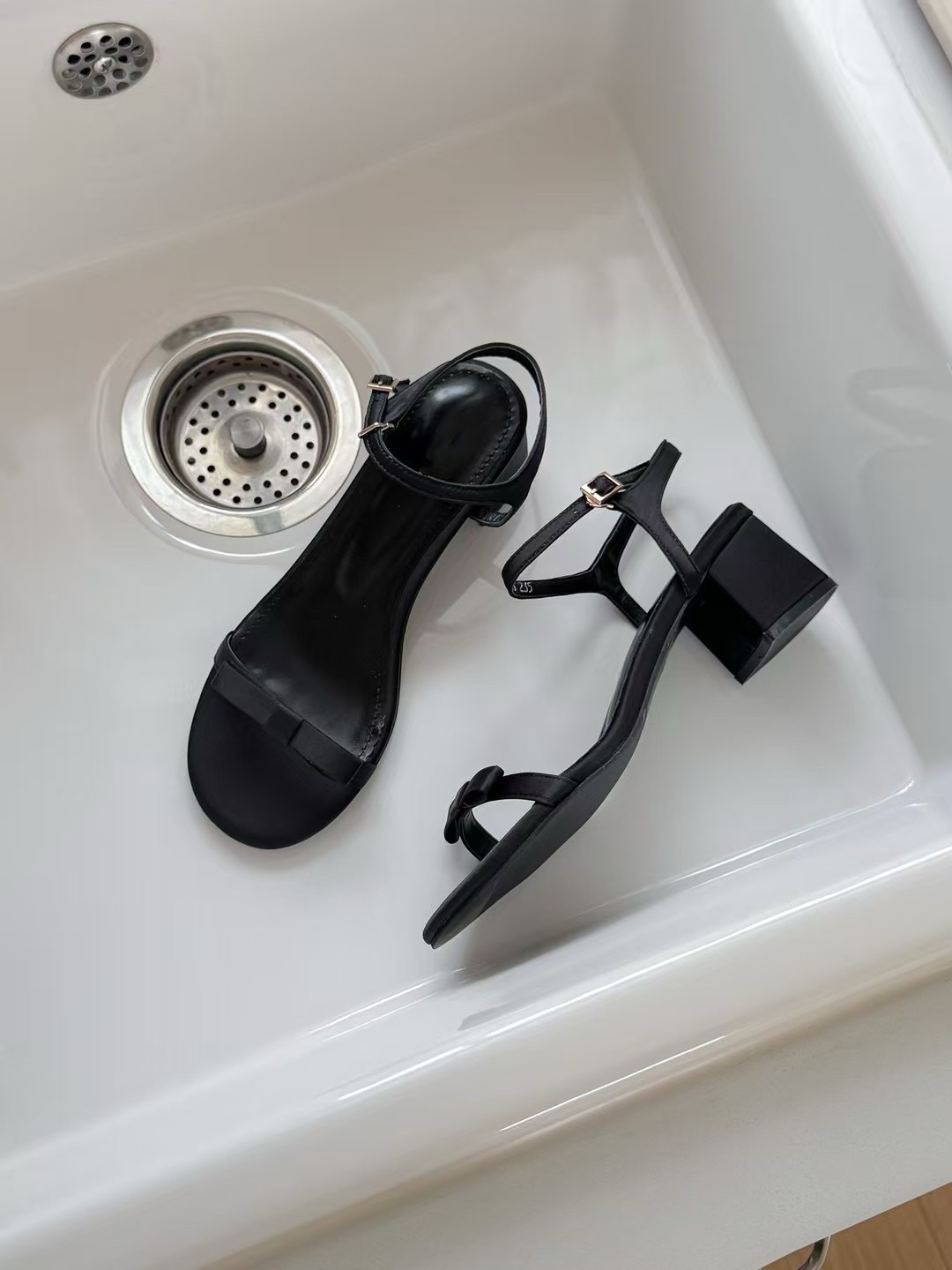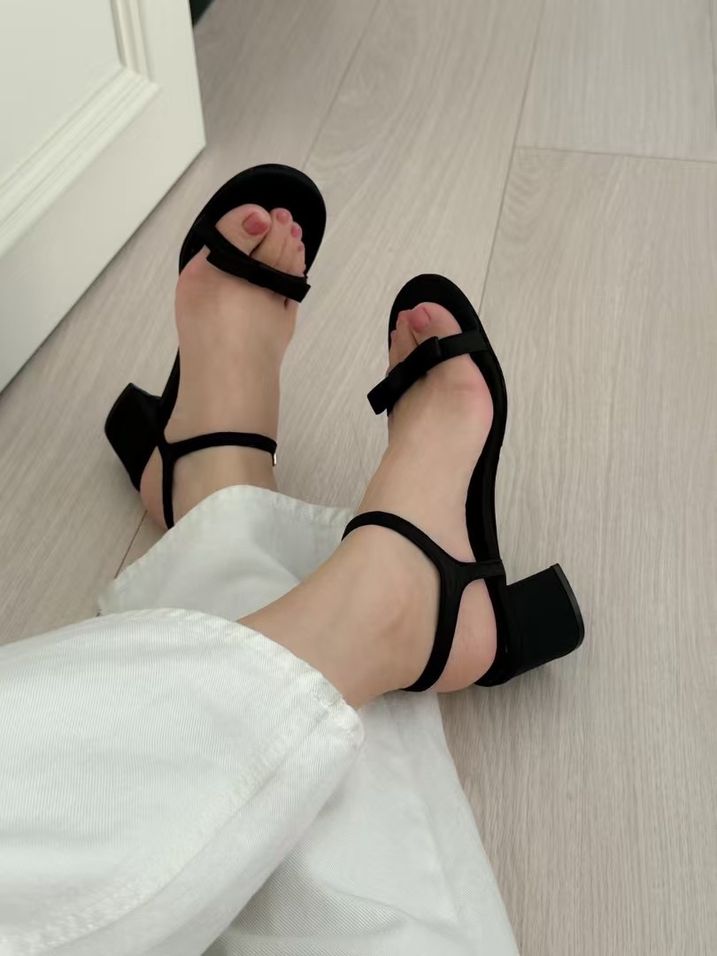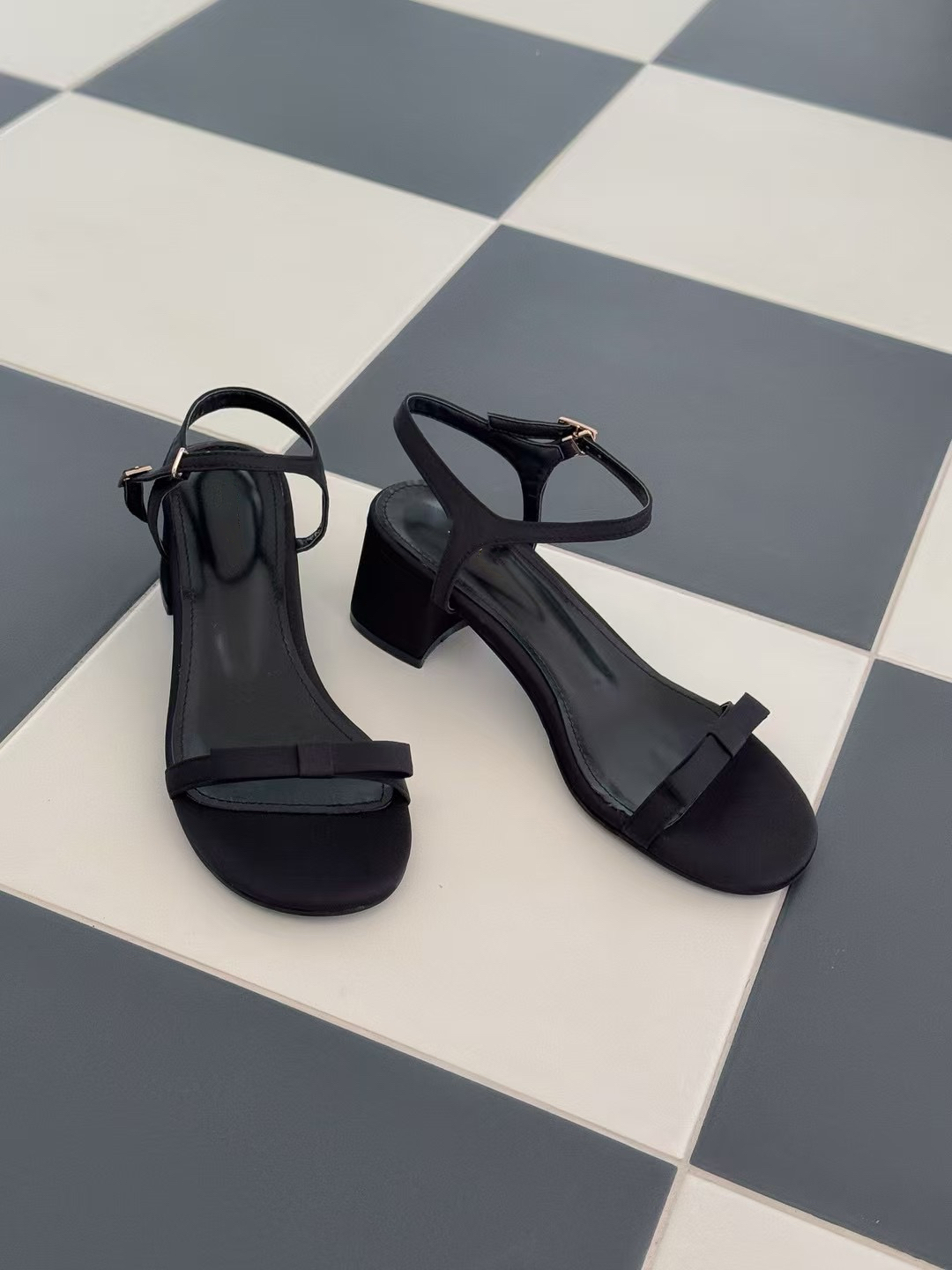 緞面蝴蝶結細帶跟鞋