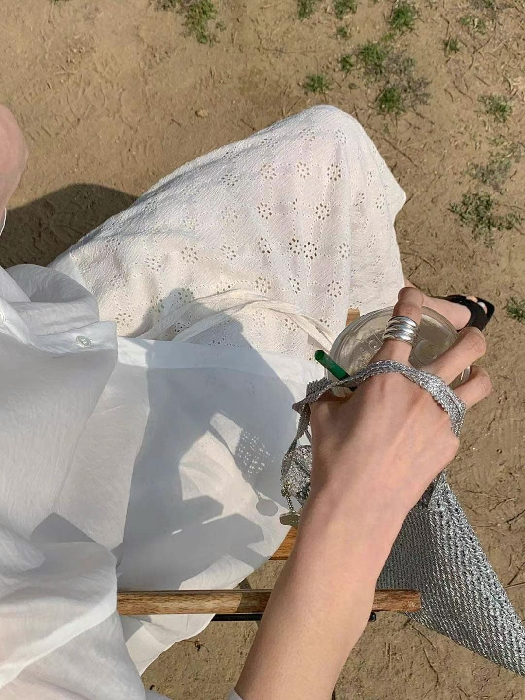 1. 菱格紋+小花鏤空,少見特別的清新搭配!