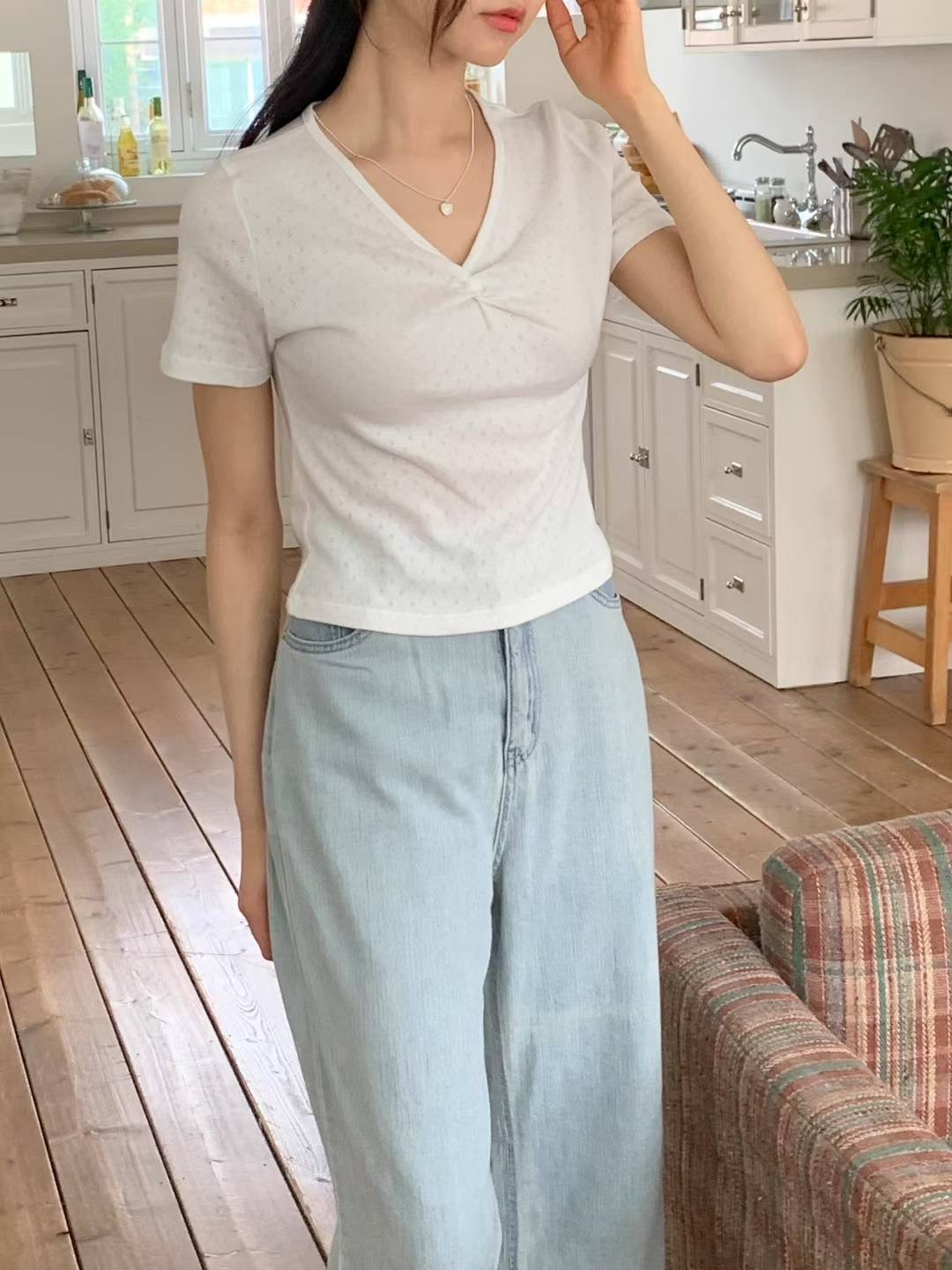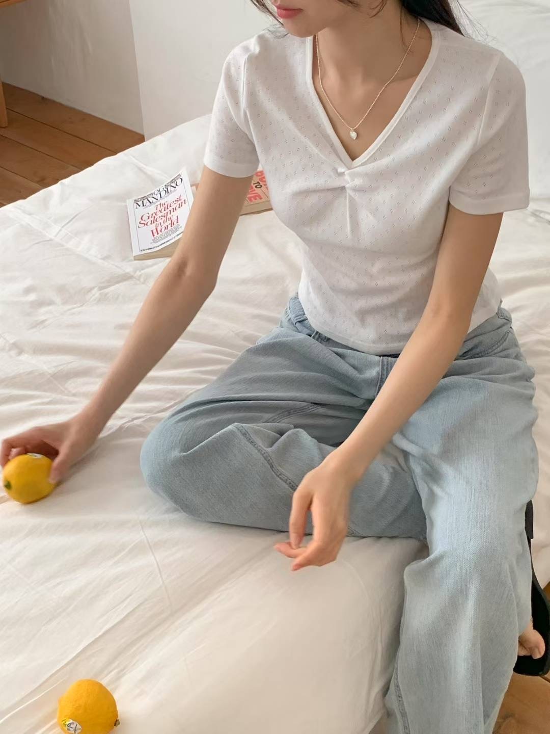 andV領簍空短袖