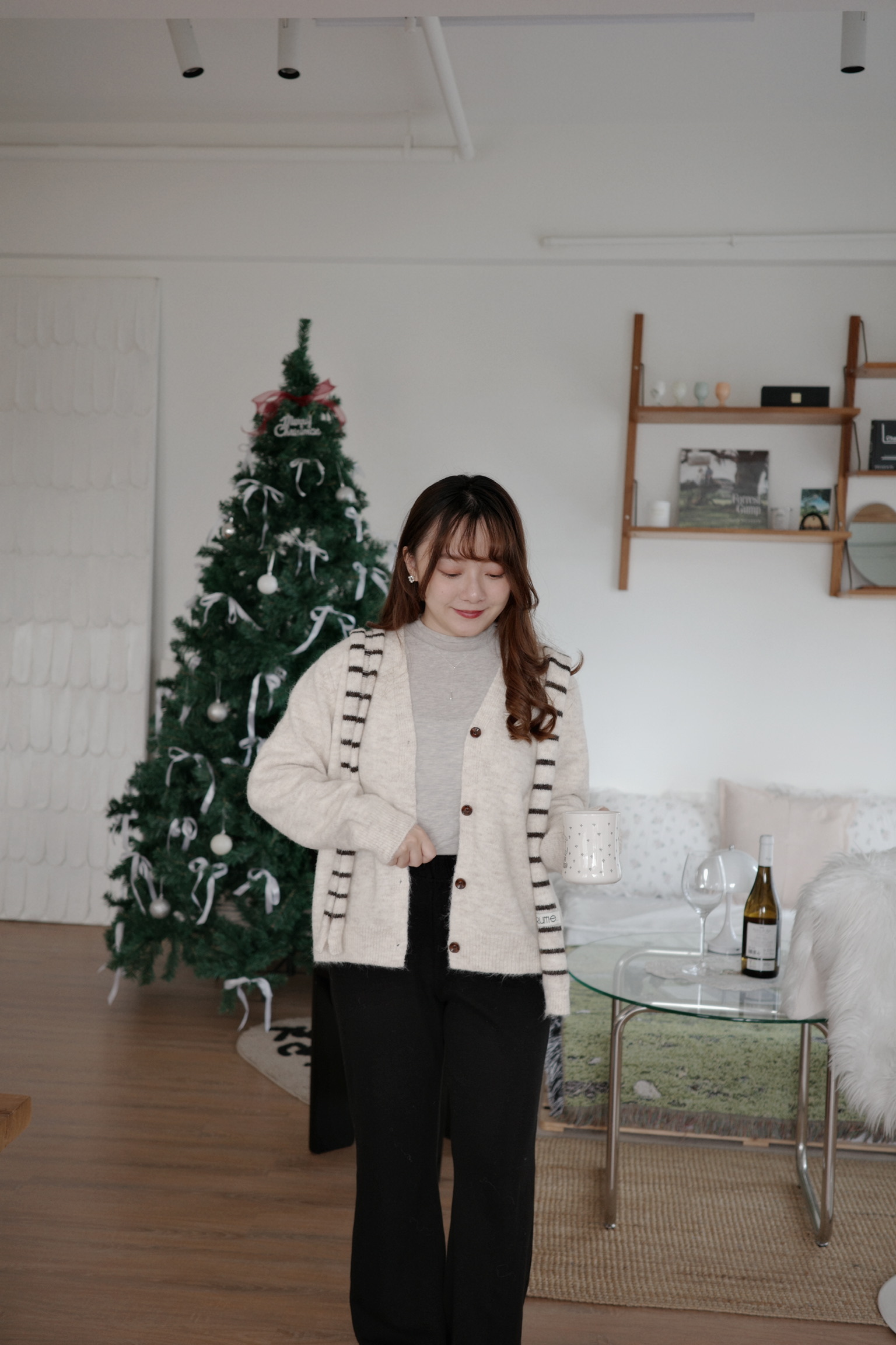 3. 條紋針織披肩,特別使用同配色超用心!