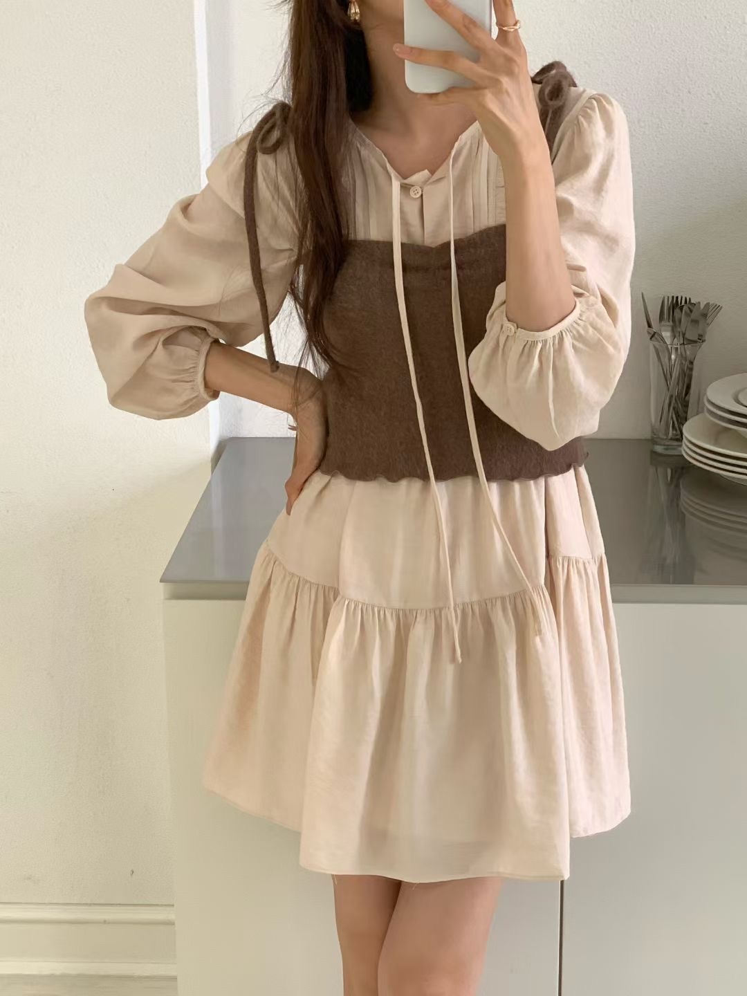 juilly style長袖飄逸傘洋
