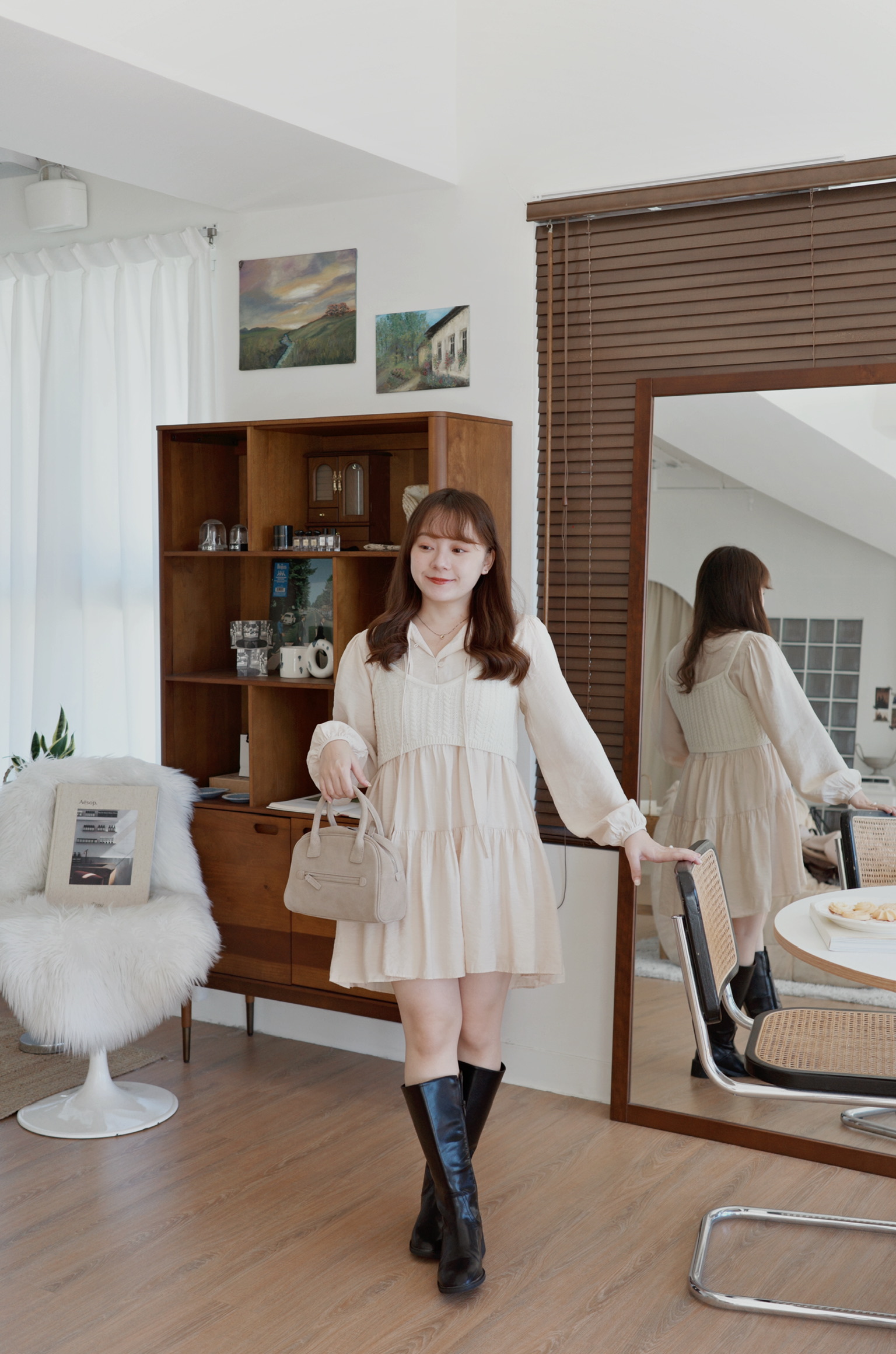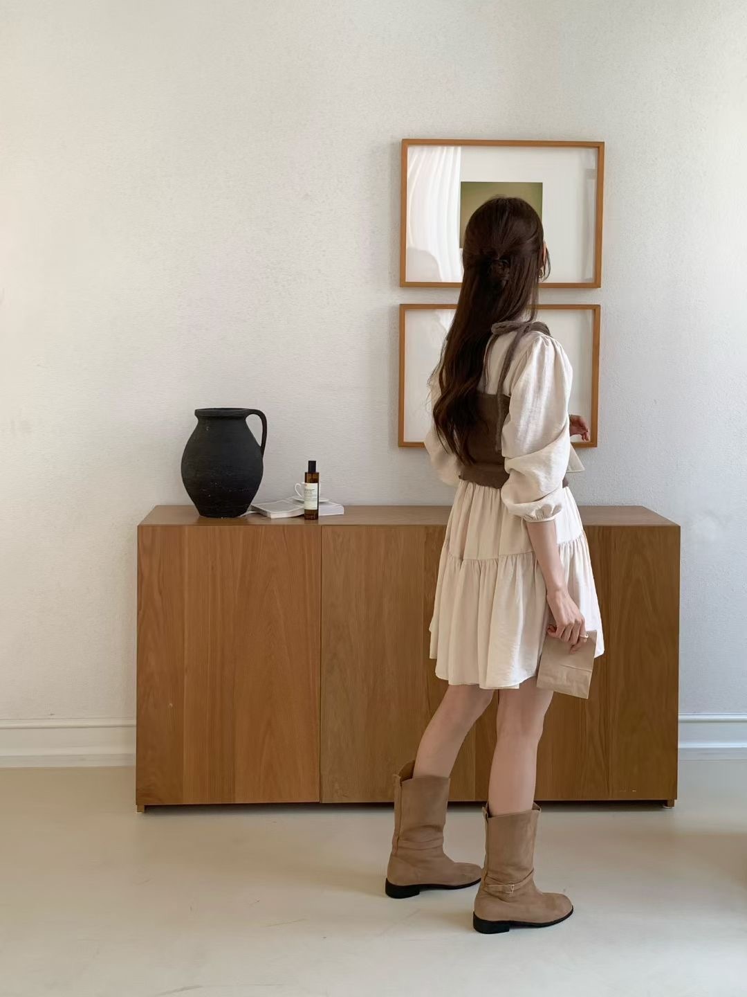 讓素面洋裝不單調,更有女孩感
